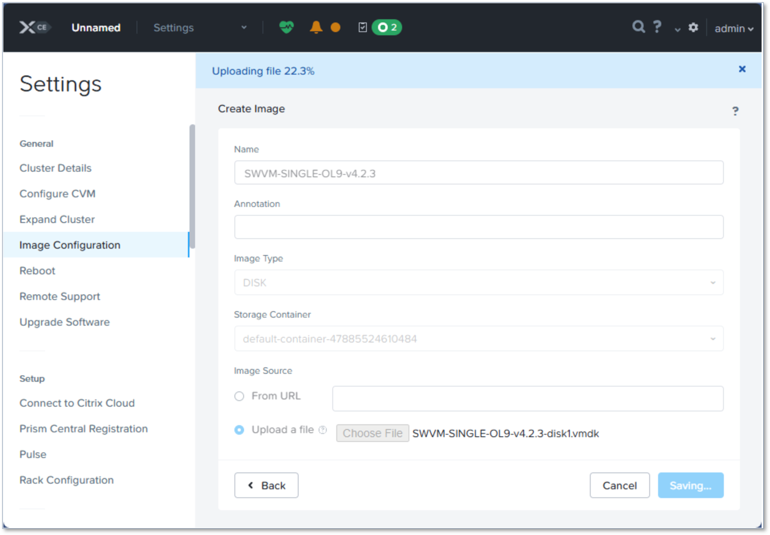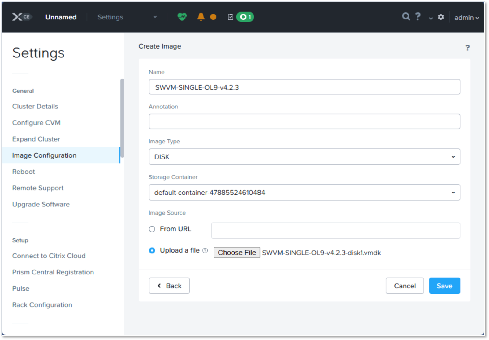 Nutanix から、vmdk ファイルを使用して新しいイメージを作成します。