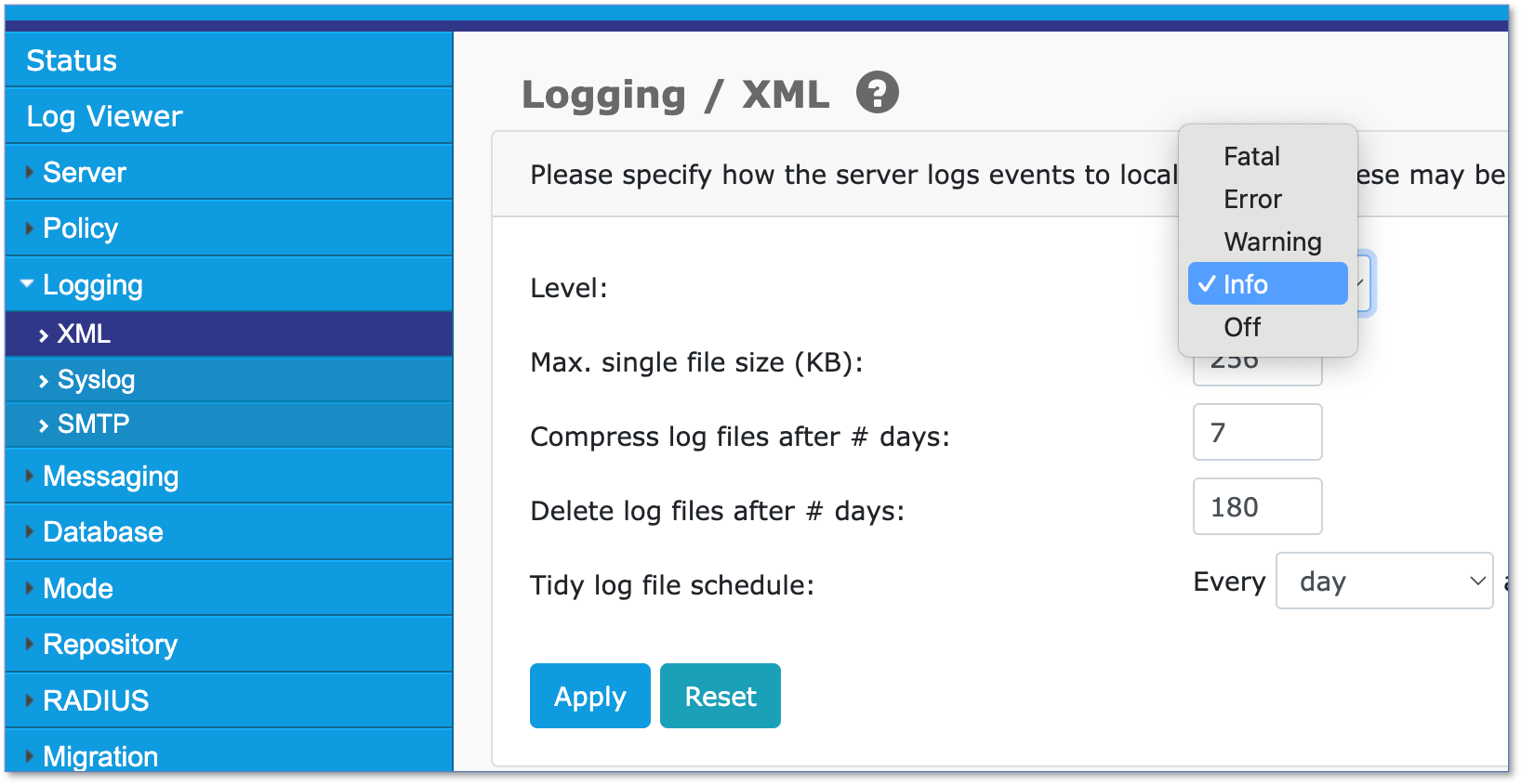 したがって、[Logging] -> [XML] で、Levelが「Off」以外に設定されている場合は、上述のXMLファイルをコピーするのが最も簡単な方法となります。
