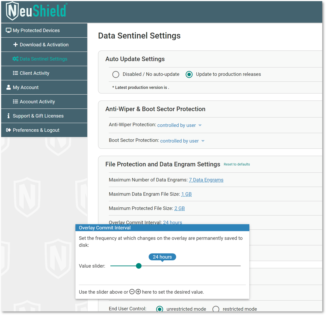 なお、その保護層の生成頻度は、オンラインのNeuShield管理コンソールから4〜96時間の範囲で設定可能です。