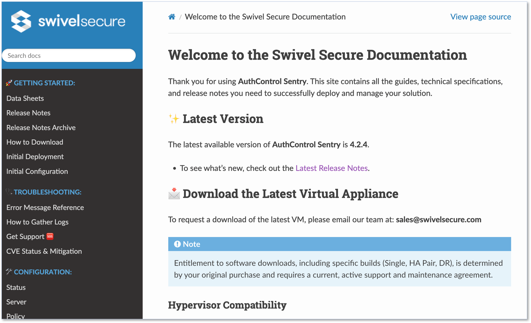 従来、Swivel Secureでは、各種技術情報をKnowledge Baseサイトに掲載し、リリースノート等のトピックスをドキュメントサイトに掲載していました。また、SwivelサーバやSwivel Cloudの管理画面のヘルプをクリックした時には、Knowledge Baseのページが表示されていました。