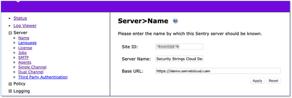 Swivel 8080 Coreの管理画面の「Server>Name」を選択します。