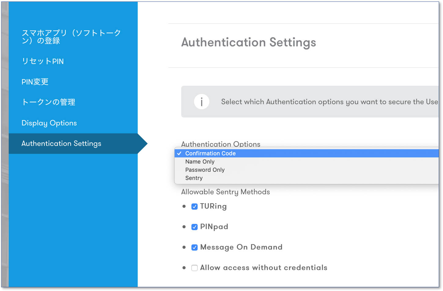 Swivel Appliance(AuthControl Sentry)V4.1.2では、ユーザポータルのログインのために、デフォルトでは「確認コード」による認証が必要になります。そのため必ず管理者ID(下記の説明では「swivel」が管理者IDです)にメールアドレスを設定して下さい。