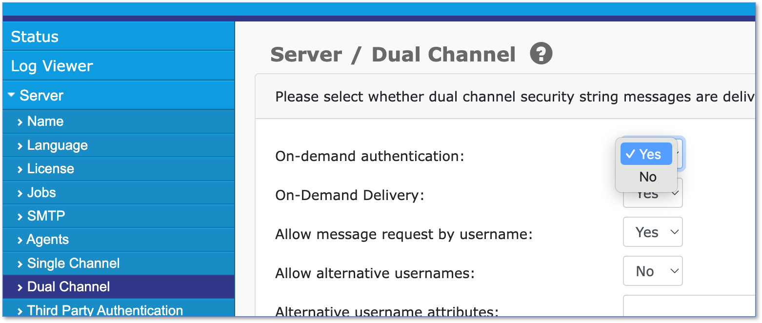 この動作は、Swivel管理画面の「Server -> Dual Channel」の設定に依存します。